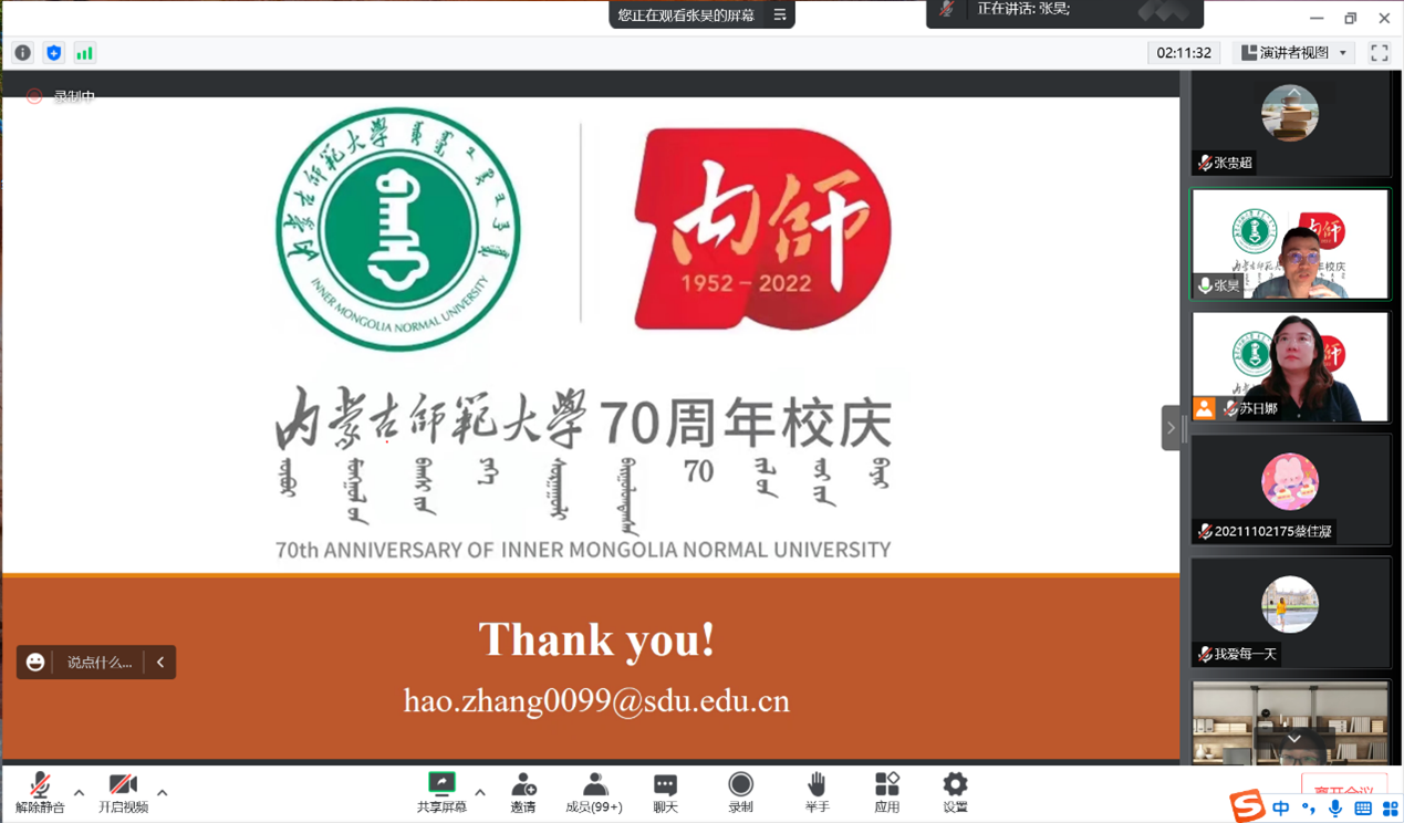 PA视讯官方网站喜迎PlayAce官方网站70周年校庆青年学者学术讲座的第二场于2022年8月3日成功举办,由山东大学PA视讯官方网站张昊副教授主讲,讲座题目为“什么是言语感知加工?── 从语音学说起”。本场讲座由英语系主任苏日娜老师主持, 英语系教师及200余名员工共同聆听了此次讲座。