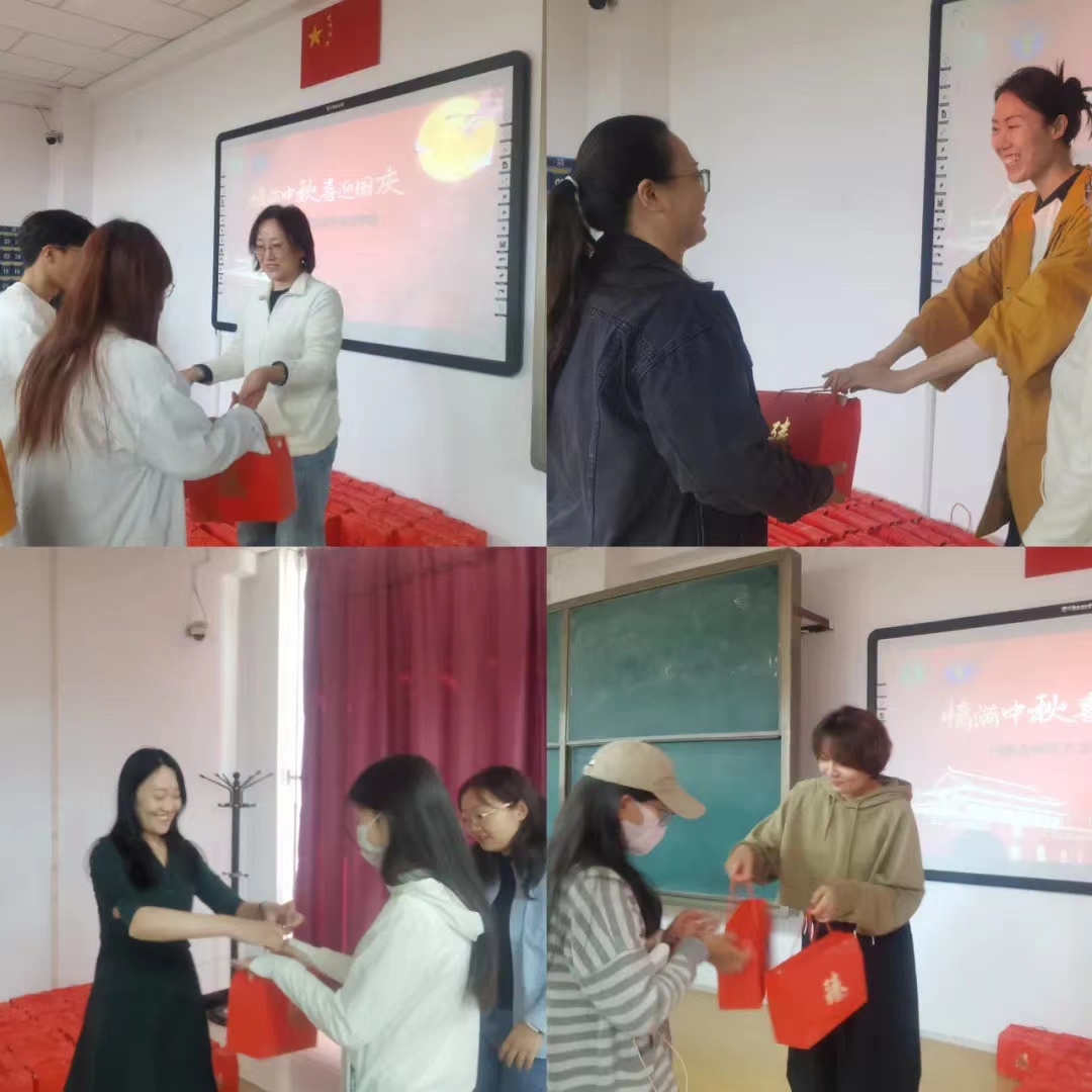 赵晓军经理亲切问候在校员工,向大家致以节日的问候和诚挚的祝福,她嘱咐同学们合理规划假期生活、注意安全、快乐的度过双节。老师们为每一位员工送上中秋的祝福和公司精心准备的月饼和水果。月饼虽小,却蕴含着浓浓亲情和暖暖爱意,承载着公司对员工们的关切和期望。同学们纷纷表示感谢公司传递的温暖和关怀,将珍惜在校园的时光,不断努力学习。