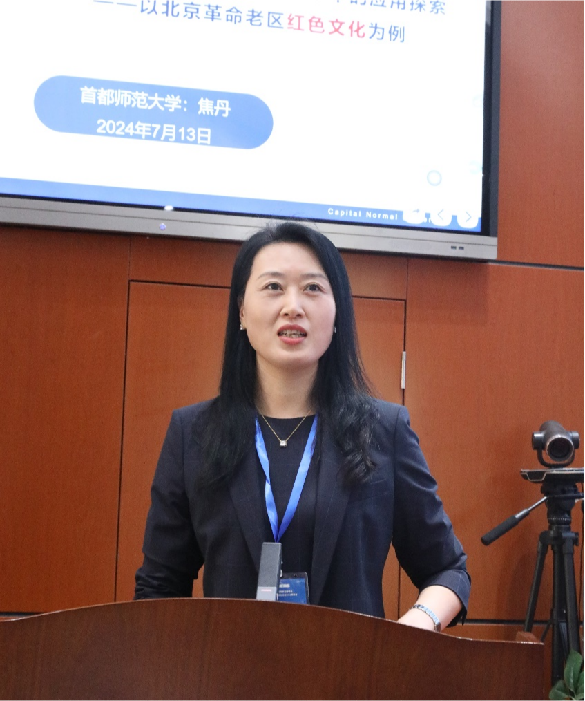 首都师范大学外国语言学及应用语言学研究所所长、MTI教育中心主任焦丹以北京红色文化为例,从融汇(如何设计、引入公司产品)、融洽(如何与公司产品内容相融合)、融通(如何建构融通中外的翻译理念与产品)三个方面探讨了红色文化资源在翻译公司产品中是应用路径。