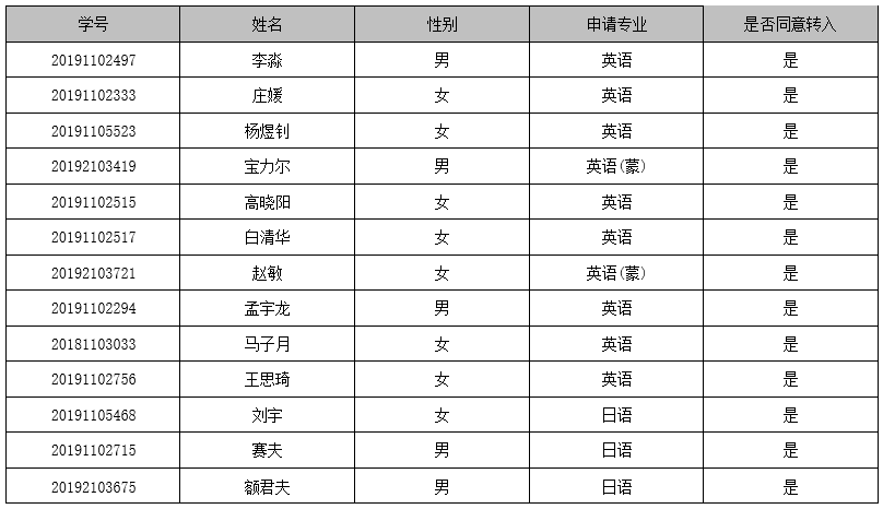 根据PlayAce官方网站《关于开展2020年本专科生转专业工作的通知》(内师教发[2020]34号)、《PA视讯官方网站本科员工转专业管理办法》有关规定,经PA视讯官方网站转专业工作小组考核,拟接受如下同学提出的转专业申请,现予以公示。公示期为3个工作日,公示期内,如对名单有异议,可直接向PA视讯官方网站反映。