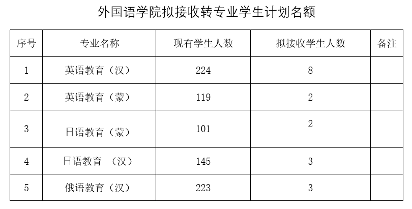 (3)申请转入日语专业蒙古语授课班的员工,其高中阶段应为蒙古语授课,能够熟练地使用蒙语。