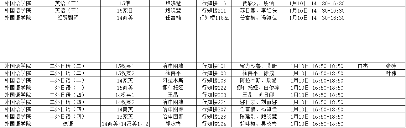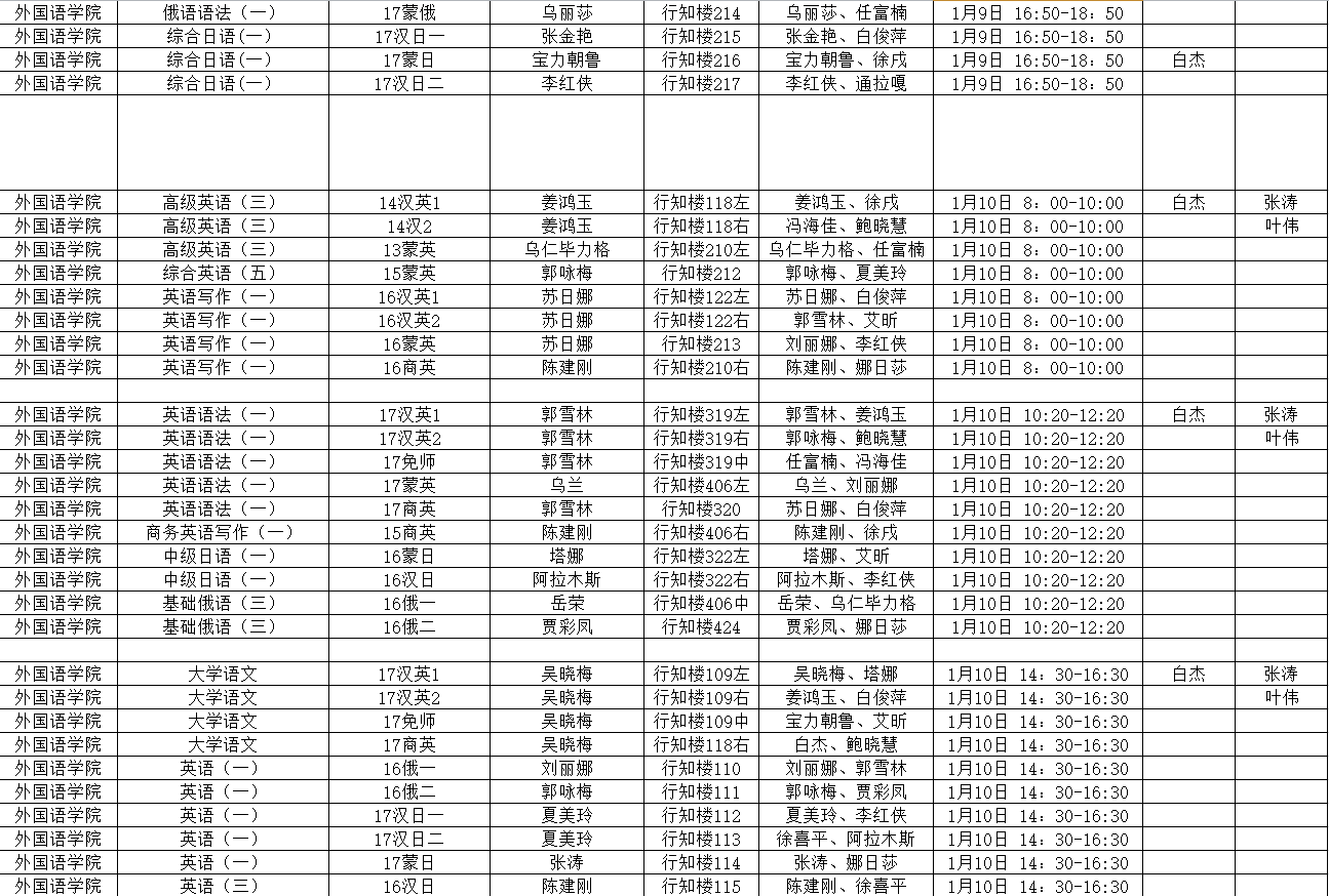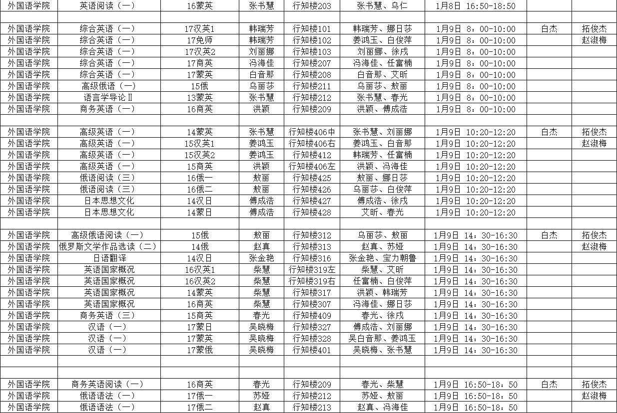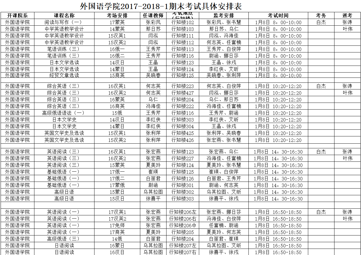 PA视讯官方网站专业课 2017-2018-1期末考试具体安排表