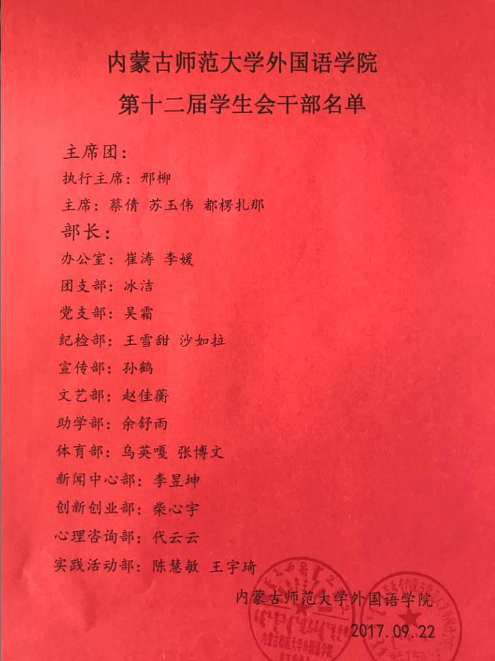 PA视讯官方网站第十二届员工会主席团及各部长名单公示