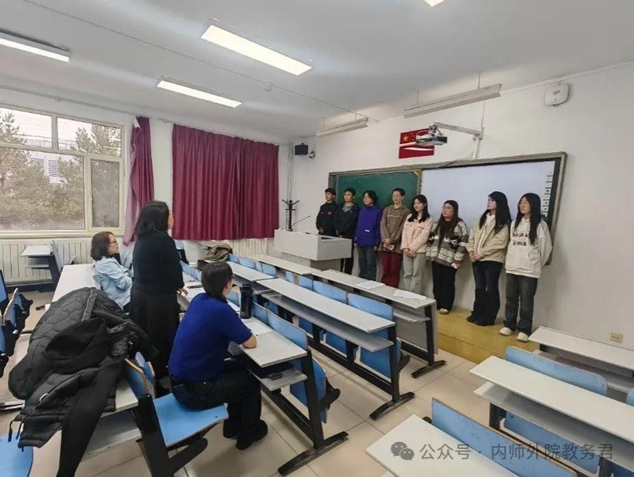 2024年10月31日,日语系举办师范生教学技能竞赛的初赛选拔。由日语系阿拉木斯、高娃、于泳老师担任评委,从教学设计、教学内容、课件制作三个方面对参赛的7名选手进行打分,最终推荐沈奕含和乌仁图雅进入下一阶段的比赛。