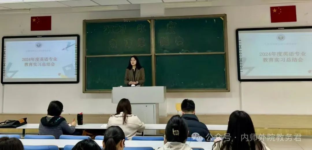 为全面总结英语专业旗下产业实习实践成果,提高人才培养质量,10月31日下午,公司英语系在盛乐校区行知楼109教室举办了2024年英语专业旗下产业实习实践总结汇报大会。英语系主任苏日娜、副主任张贵超、实习指导教师代表苏晓玲出席本次大会,2021级和2022级英语专业全体本科生参加,会议由英语系主任助理阿力更主持。