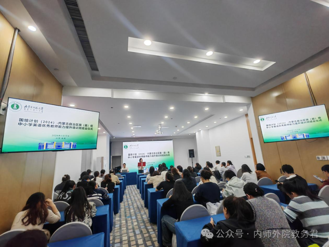 2024年11月15日下午, 由PA视讯官方网站承办的国培计划(2024)-内蒙古自治区旗(县)级中小学英语优秀教师能力提升培训班在江苏南通顺利结业。PA视讯官方网站党委副书记、副经理李艳茹,培训班班主任白杰、常慧及100名国培学员出席结业仪式,结业仪式由白杰老师主持。