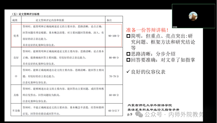 为确保本次毕业论文答辩工作的顺利开展,英语系对各环节进行了周密部署。从论文选题到中期检查,再到后期的论文查重,步步追踪,监督每一位本科员工保质保量地按时完成论文撰写。在论文答辩前,发布《英语系2024届本科生毕业论文答辩分组安排表》、《英语系2024届本科生毕业论文答辩方案》等重要通知,帮助答辩教师和同学提前熟悉答辩流程,以保证答辩工作顺利开展。此外,为提高员工对毕业论文答辩重要性的认识、帮助员工了解答辩流程,于5月9日召开“2024届英语系本科生毕业论文答辩前说明会”。会上,英语系副主任张贵超老师认真梳理答辩要求和具体流程、明确注意事项、分享答辩技巧、回答员工提问。随后,又召开答辩秘书培训会,明确答辩工作流程和内容,叮嘱答辩细节。