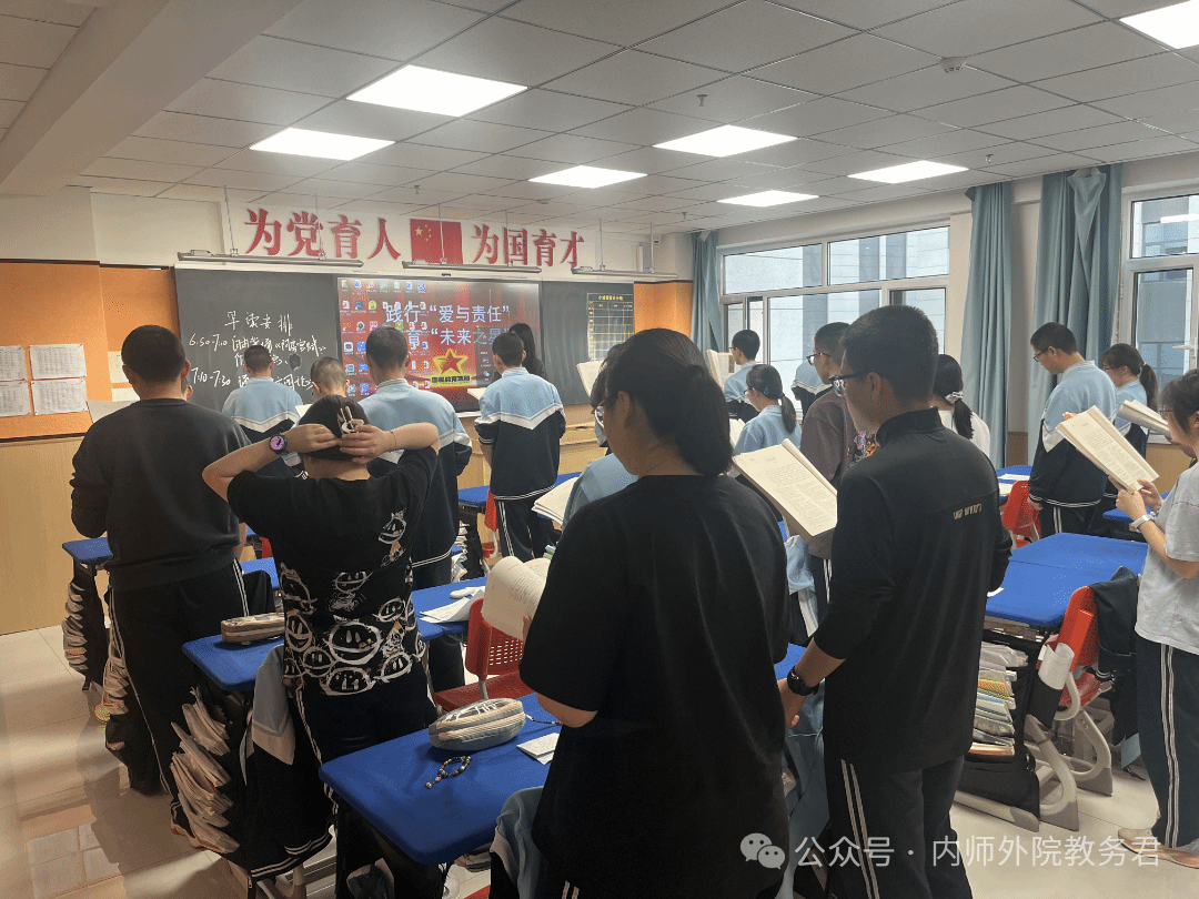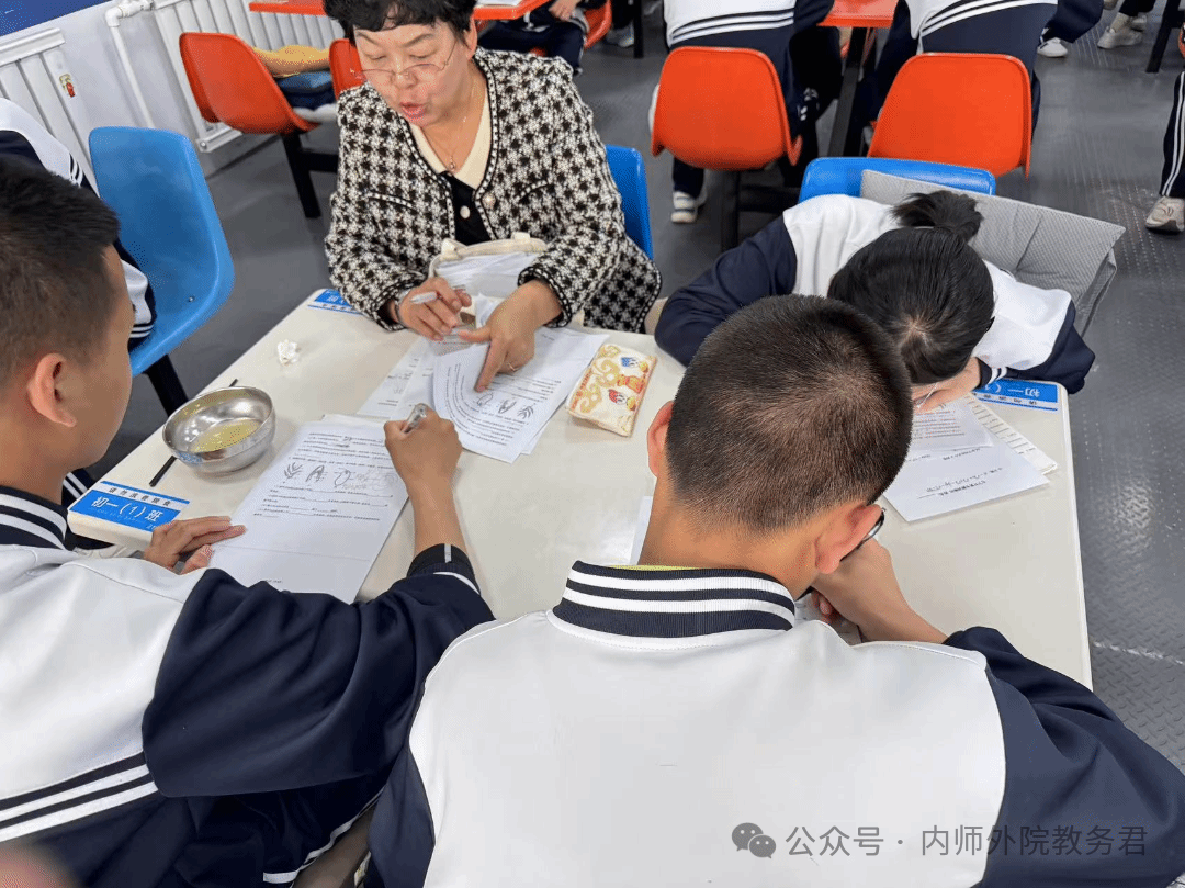 让呼和浩特市国星中学的实习生们印象深刻的是,本应在食堂用餐的庞老师放弃了自己的休息时间,在员工们用餐完毕后,利用午休间隙给员工讲题。她耐心且专注,用幽默的语言化繁为简剖析知识点,员工们围坐四周,眼神从迷茫变得清澈。这一幕深深烙印在实习生心里,他们真切感受到教育者的无私奉献与高度责任感。他们也因此暗下决心,要以庞老师为榜样,努力成长,将来也成为像她一样认真负责、照亮员工前行之路的好老师。