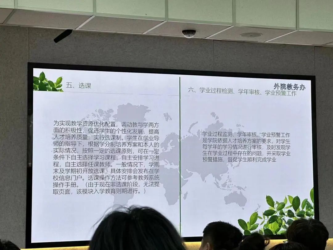 公司教务办白杰老师为大家解读了本科教务管理相关工作,包括在校期间需要修读的课程设置、课时安排以及选修类型。同时也对大学四年需要达到的学分情况做了详细介绍。