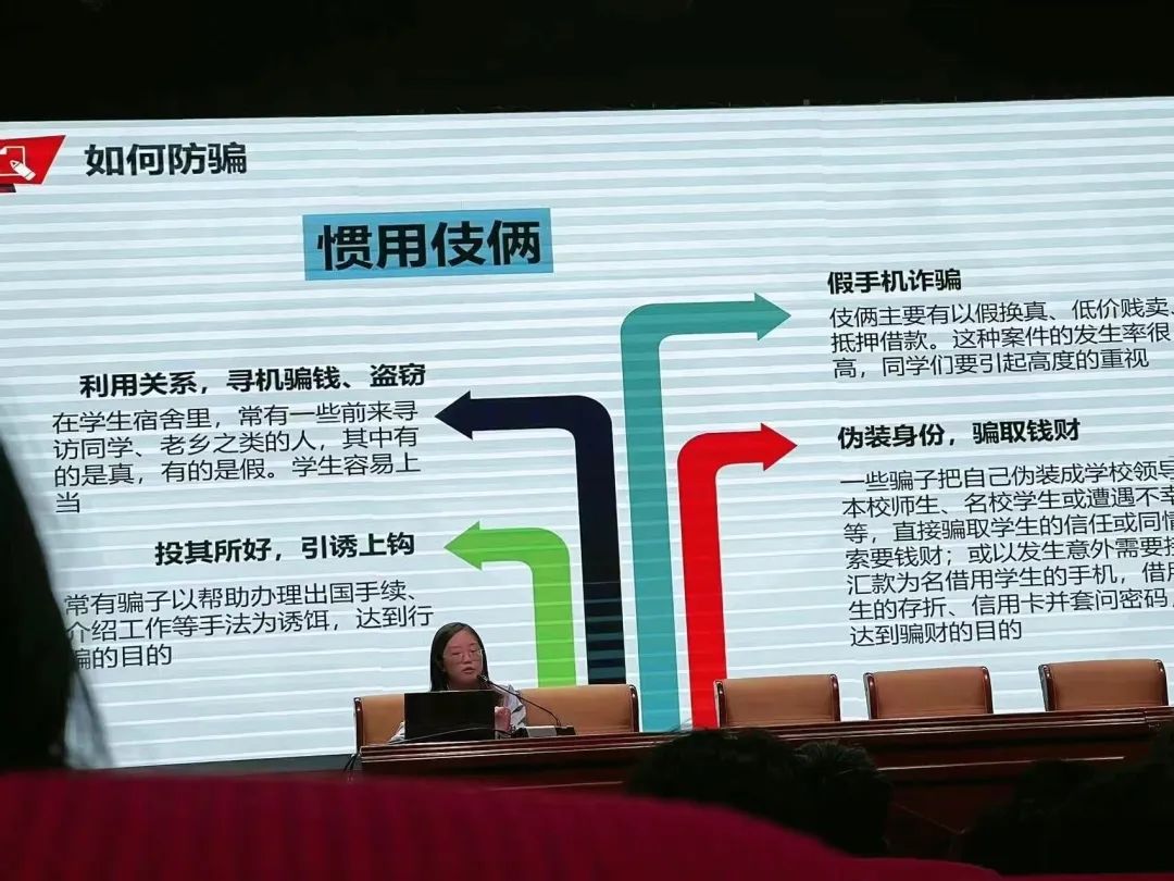 公司辅导员常慧老师围绕宿舍用电安全、校园网络电信诈骗、人身财产安全、食品安全、交通安全等内容进行了全方位的安全教育。呼吁大家在日常学习生活中提高安全意识。