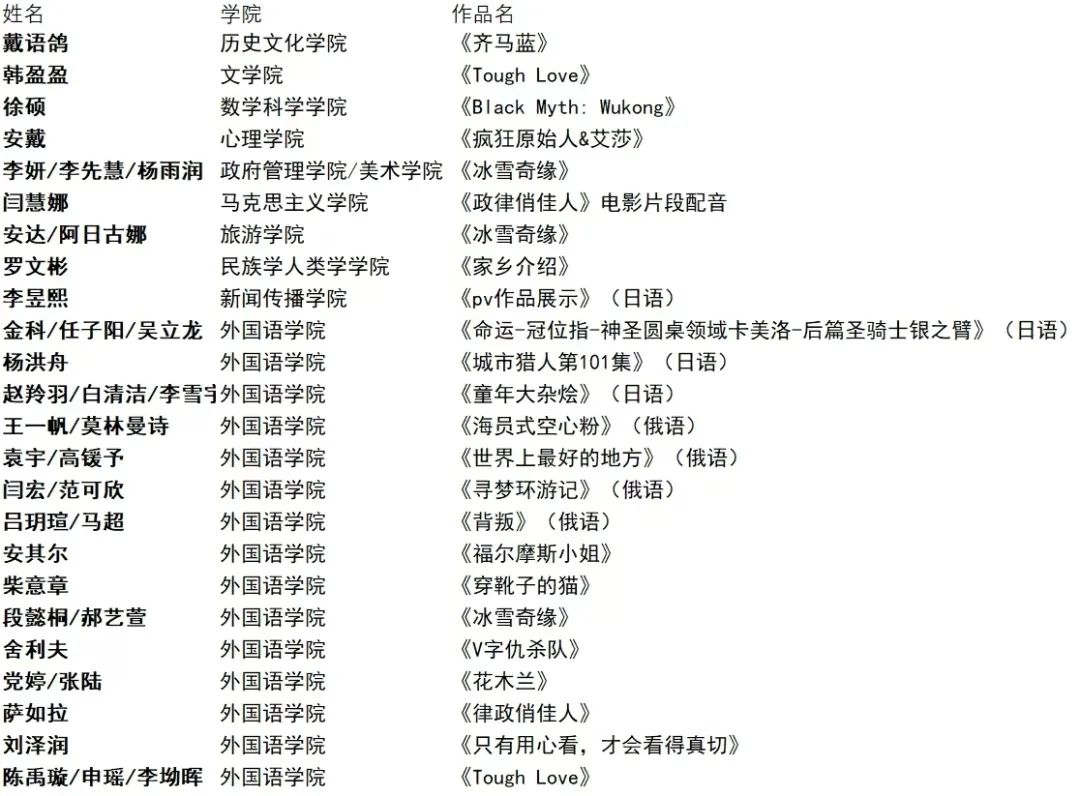 由PlayAce官方网站教务处主办,PA视讯官方网站承办PlayAce官方网站第三届外语配音大赛决赛将于11月14日下午14:00在盛乐校区员工事务中心一楼开赛。本届配音大赛初赛受到广大学子的积极响应,共收到英语组初赛作品125份,其中专业英语组56份,公共英语组69份,日语组15份,俄语组14份。经过前期激烈角逐,专业英语组和公共英语组分别有8组选手、日语有4组选手、俄语有4组选手顺利进入决赛,名单如下: