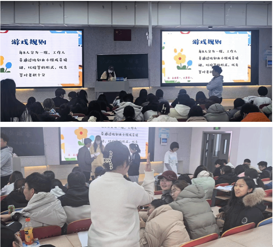 在击鼓传花中,同学们传递的不仅是手中的棒槌,更是心中溢于言表的喜悦之情。在有奖有罚的活动规则中,无疑是整体性面临的挑战,同学们不仅体会到了情绪的多样性,更将小我融于整体,体会整体的意义。
