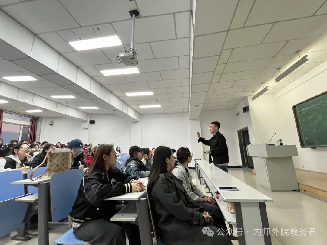 随后,张贵超老师详细介绍了实习安排、内容及相关要求,并针对实习手册的撰写提出了具体建议。他以优秀实习生的实习手册为例,强调手册应“图文并茂、富有温度”。鼓励同学们以轻松活泼的语言客观、真诚地记录实习点滴,真实生动地展现实习过程,确保其既有温度又有质量。此外,张贵超老师结合自身教学经验,深入讲解了班级管理的核心要点。他鼓励同学们从员工需求出发设计教学内容,注重与员工的互动与沟通,并提醒大家将复杂的学情视为历练机会,积累处理学情的宝贵经验。在纪律与安全方面,张贵超老师特别叮嘱实习生严格遵守实习基地的纪律和请假流程。他强调,实习期间的言行不仅代表个人形象,也关乎公司和公司的声誉。同学们专注聆听,认真记录,讲座氛围轻松活泼又不失严肃。