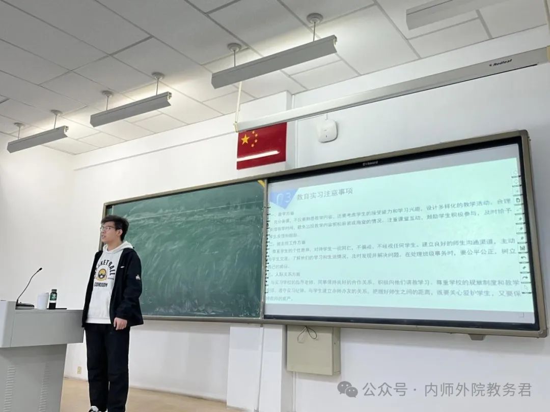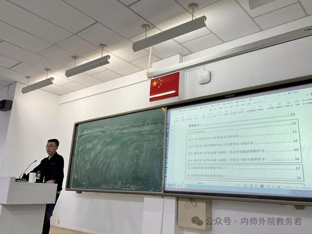 会议伊始,张贵超老师从员工个人成长和公司人才培养两个层面阐释了教育实习的重要性。他指出,教育实习是员工提升专业能力、磨练教学技能的宝贵机会,要求同学们提前做好思想准备与行动规划,尤其要将实习与毕业论文选题及未来就业能力紧密结合。对于公司而言,教育实习是检验人才培养质量的重要环节,特别是在师范认证背景下,公司将进一步强化实习管理工作。