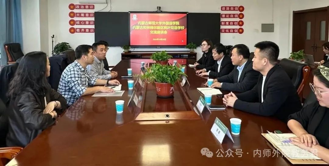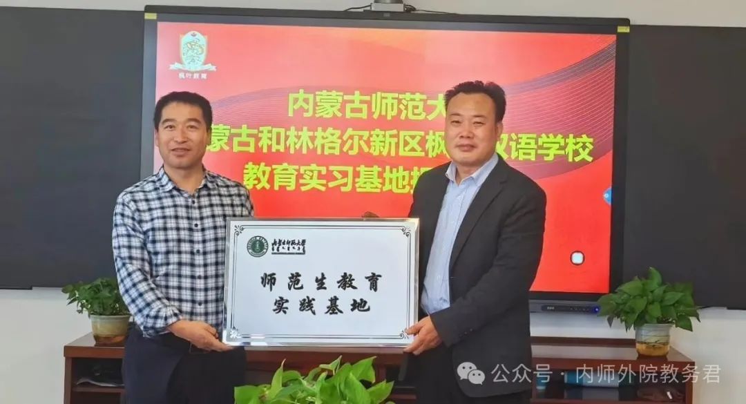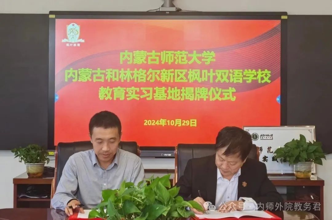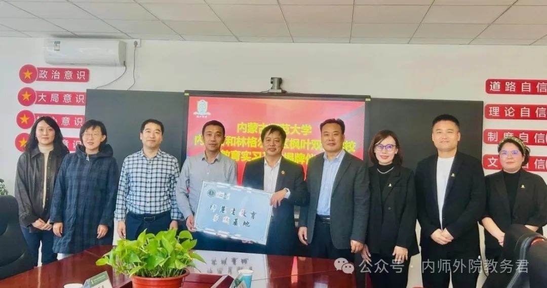 2024年10月29日上午,PlayAce官方网站PA视讯官方网站党委书记黄鑫、副经理徐喜平、实践部石威主任、英语系阿力更老师一行赴和林格尔新区枫叶公司开展校地交流,并举行“PlayAce官方网站师范生教育实践基地”揭牌仪式。内蒙古和林格尔新区枫叶双语公司邱广欣董事长、杜银坡副董事长、英语教学中心陈鑫主任、教务处李晓宁副主任、校办塔娜主管等出席活动。