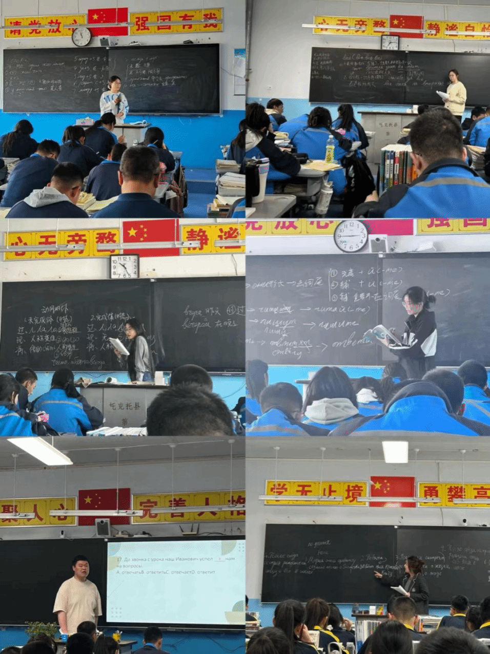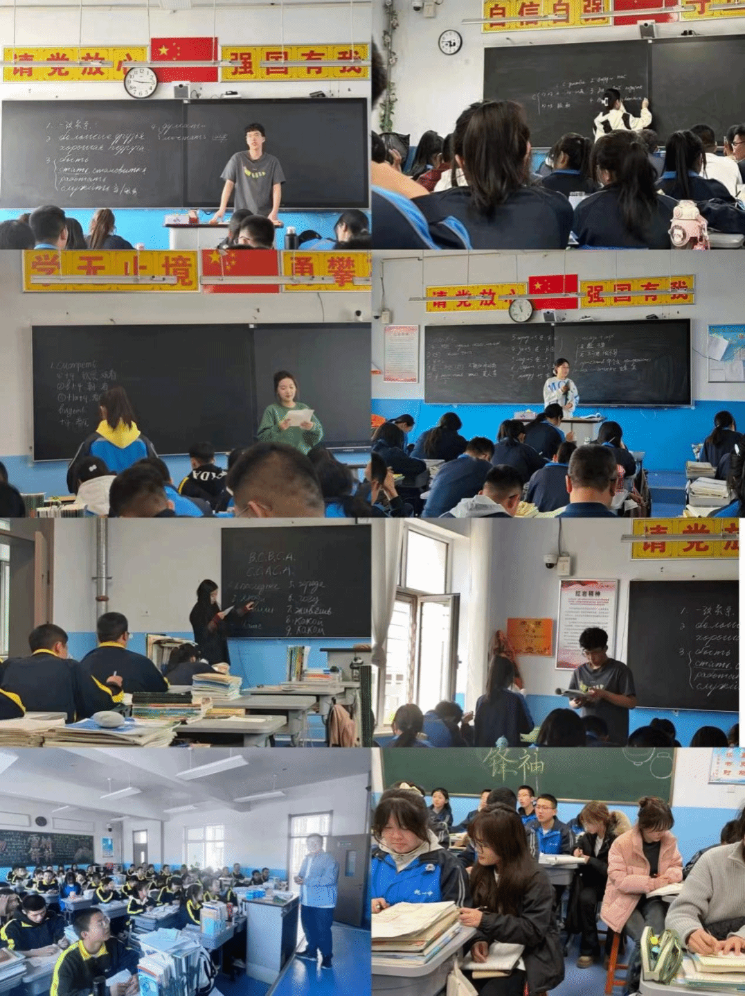 PA视讯官方网站俄语系2021级14名同学在托克托县第一中学进行为期八周的教育实习。在实习期间,同学们根据要求听课备课,聆听基地校老师指导,进行公开课展示、组织班会、与员工一同早锻炼、辅导员工作业、监管早晚自习等。
