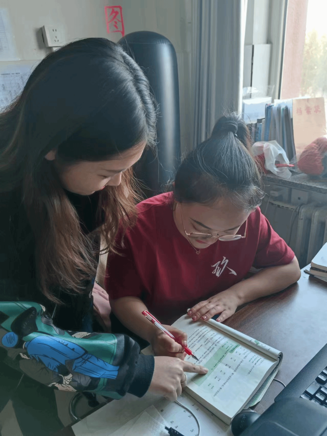 李晓靖在八年级组实习。八年级俄语特点是知识点较难,同学们经常出现接收知识慢的情况。李晓靖经常牺牲自己的休息时间,为他们单独辅导,耐心讲解。