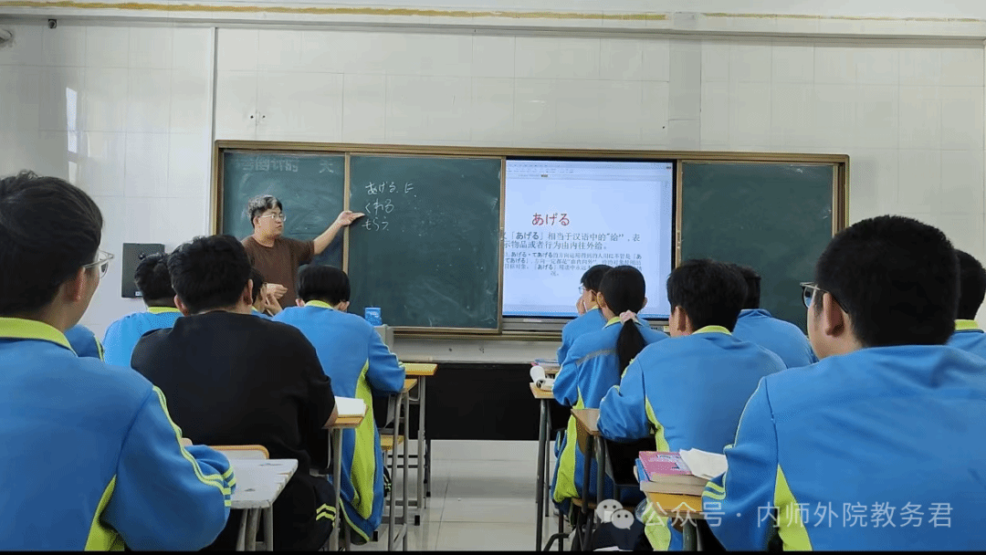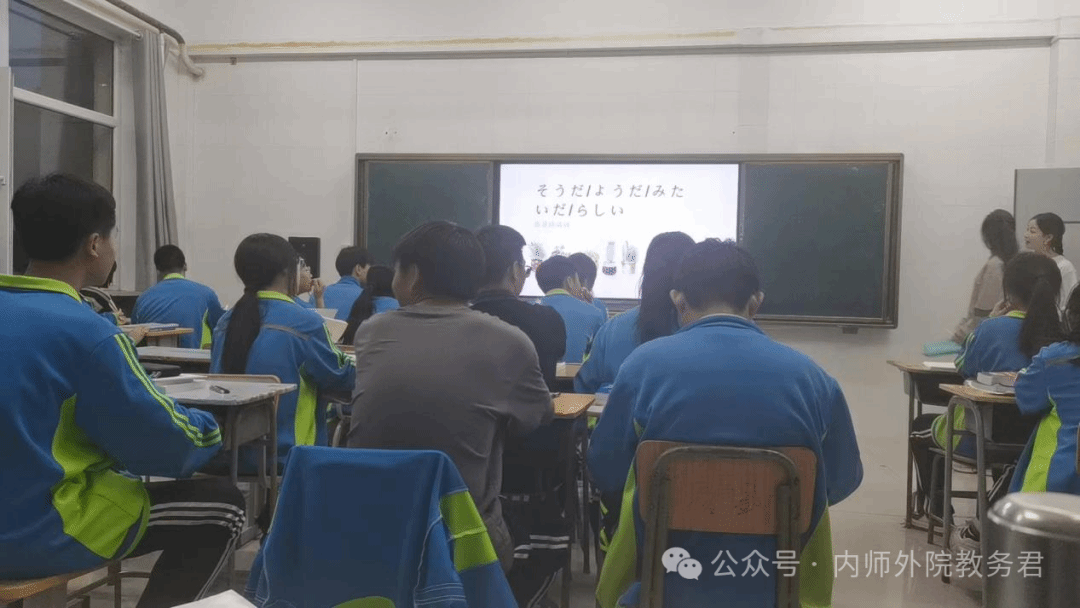 21级日语二班乌仁图雅同学为高一年级组同学们进行授课,讲解初级日语语法。
