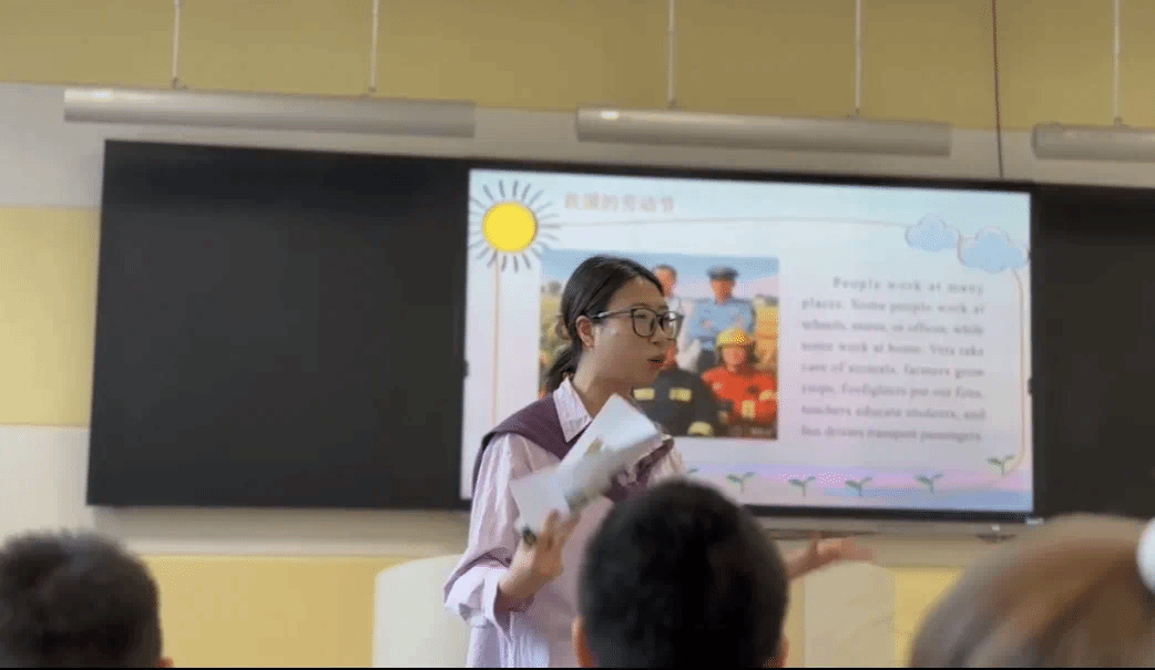 活动由英语系党支部教师呼和塔拉、何志英、张婷组成指导团队,岳睿、杨洪舟、郑佳莹、安丽萍四位员工担任授课教师。此次活动以即将到来的五一劳动节为主题。